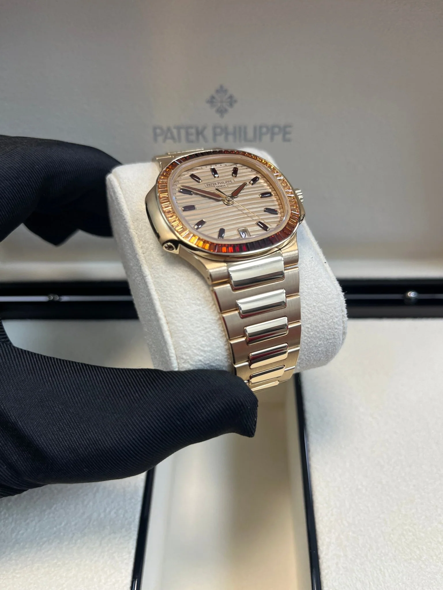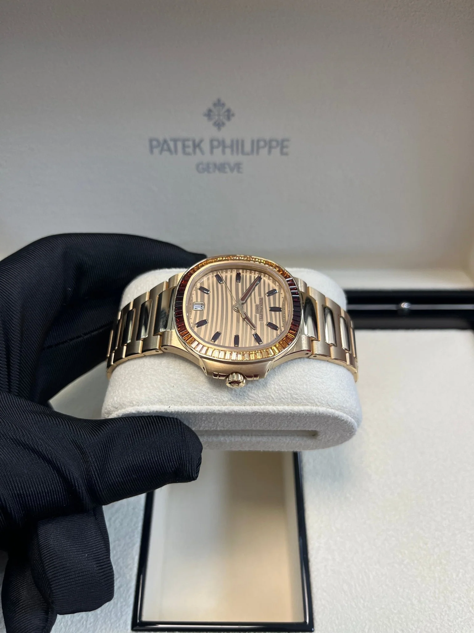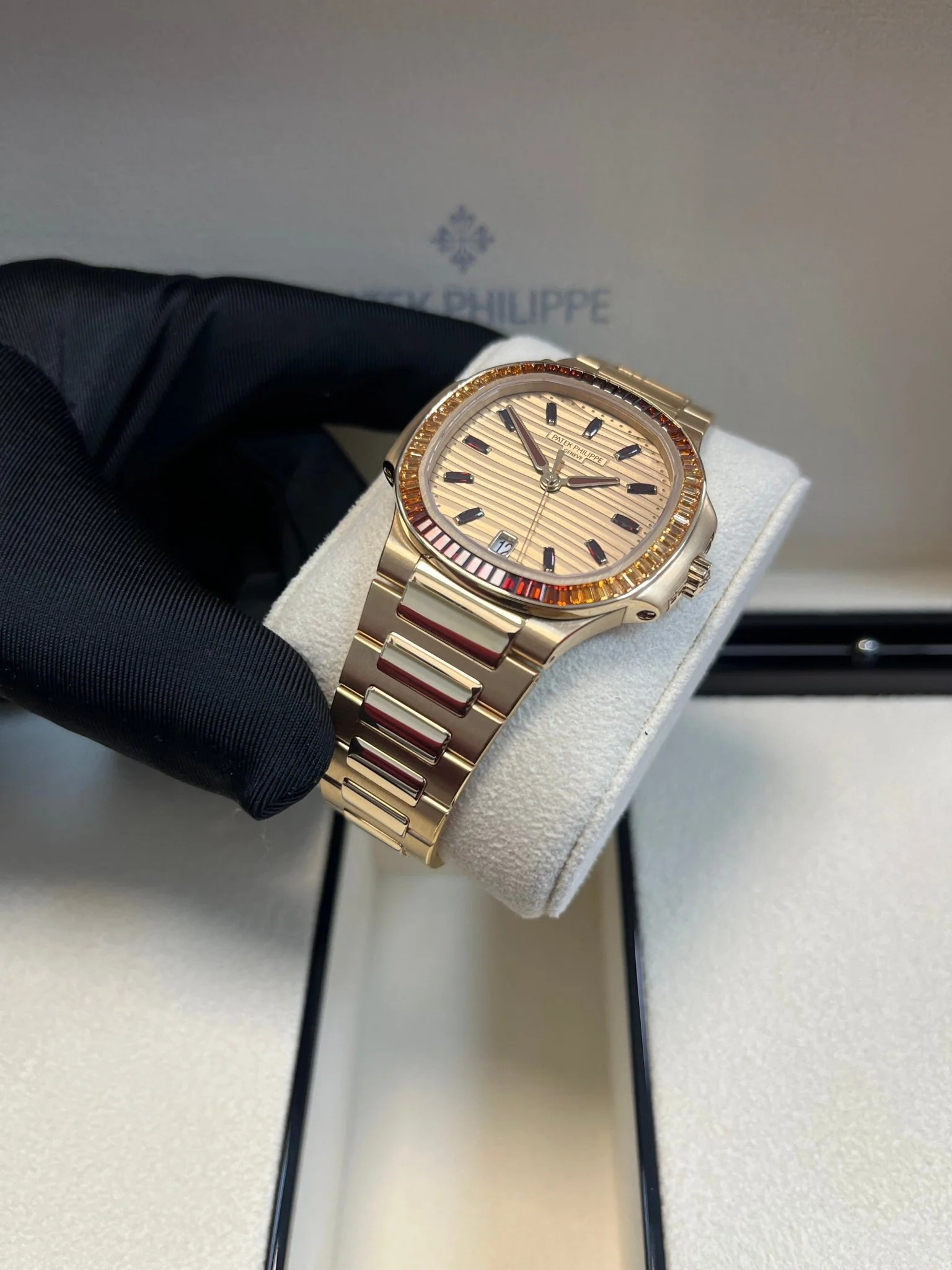 Patek Philippe Nautilus Automatic Rose Gold Baguette Cognac Bezel 7118/1300R-001