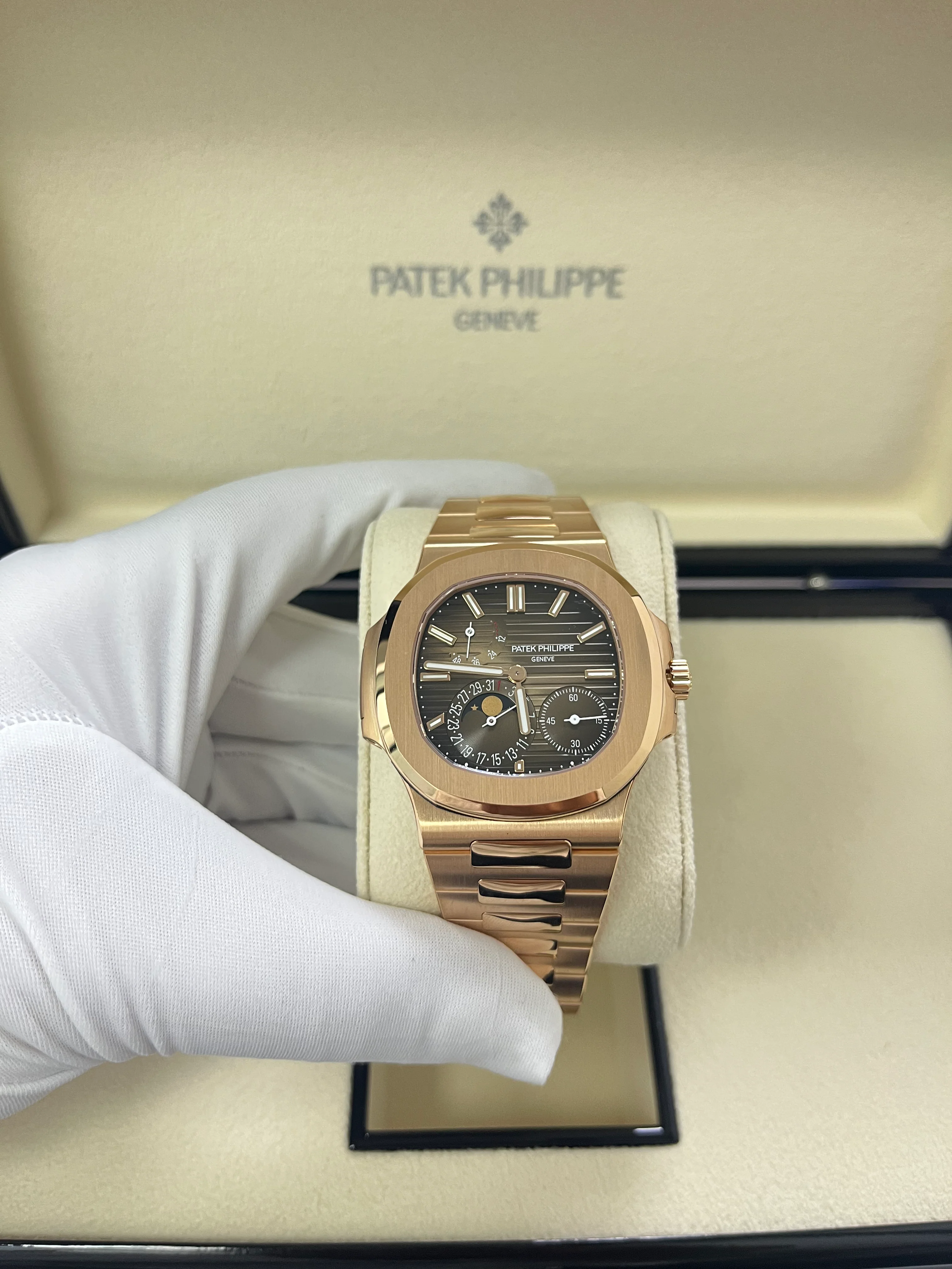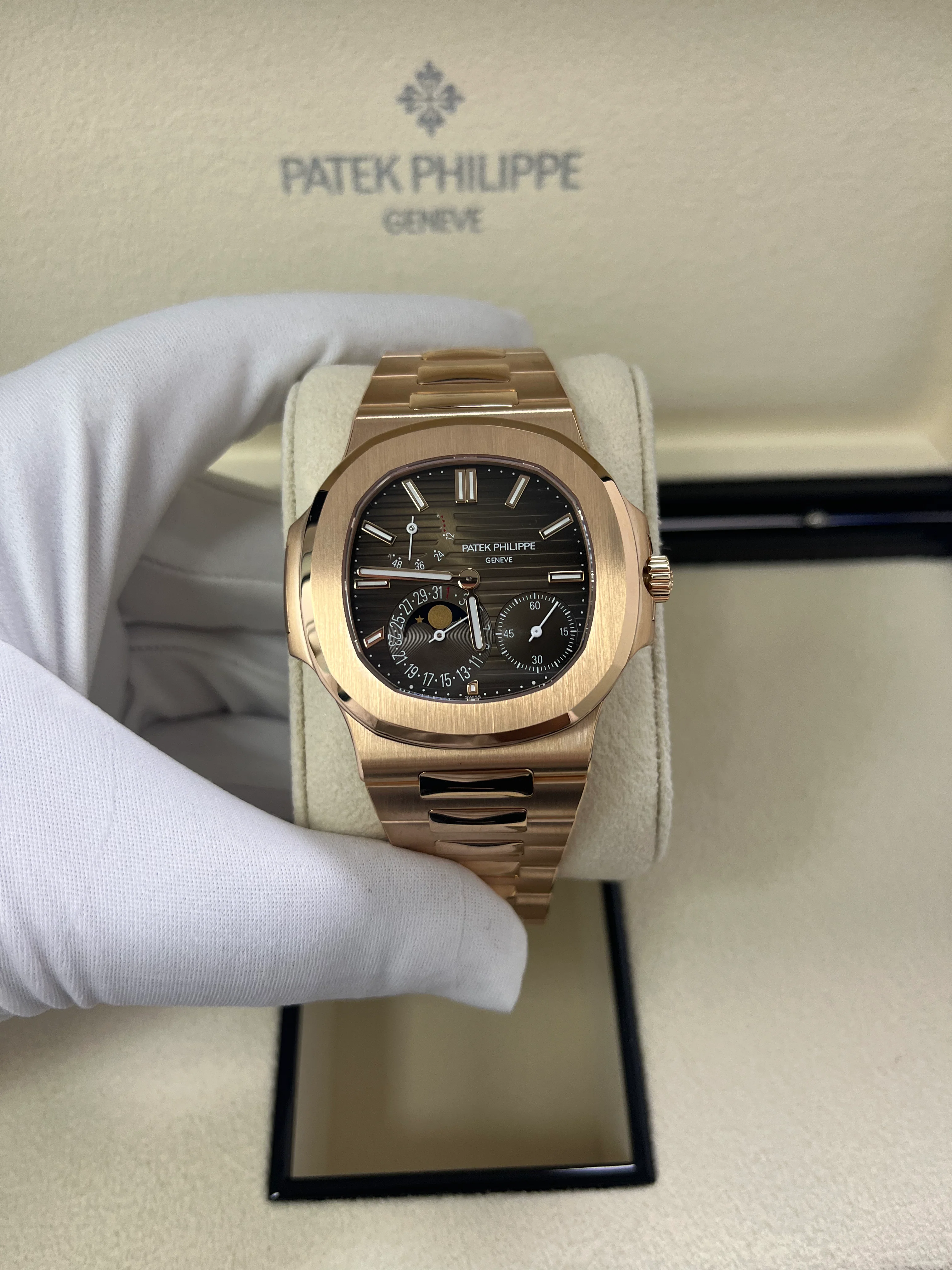 Patek Philippe Nautilus Moon Phase Rose Gold 40mm Brown Black Dial 5712/1R-001