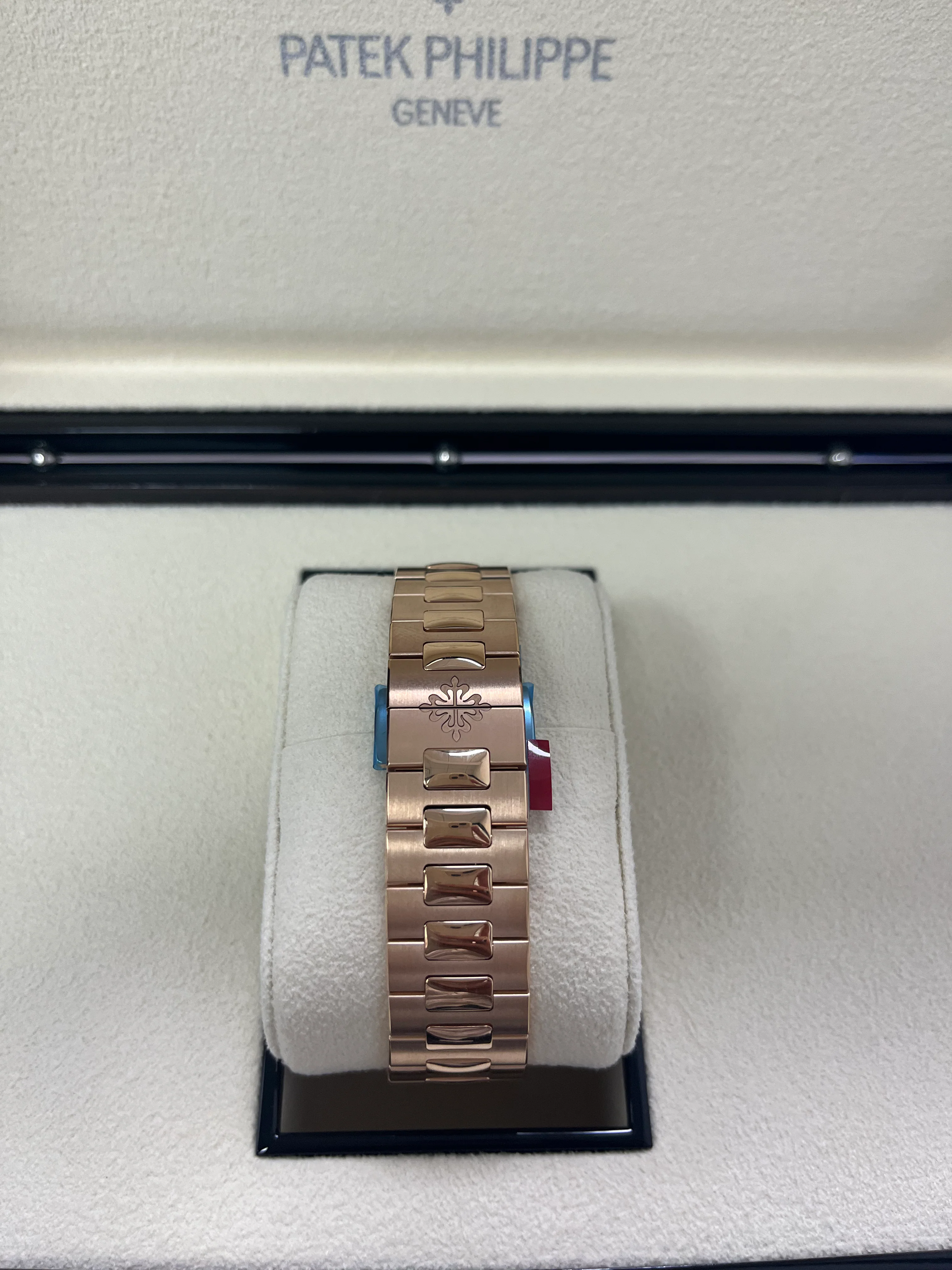 Rose gold. Patented fold-over clasp with lockable adjustment system.